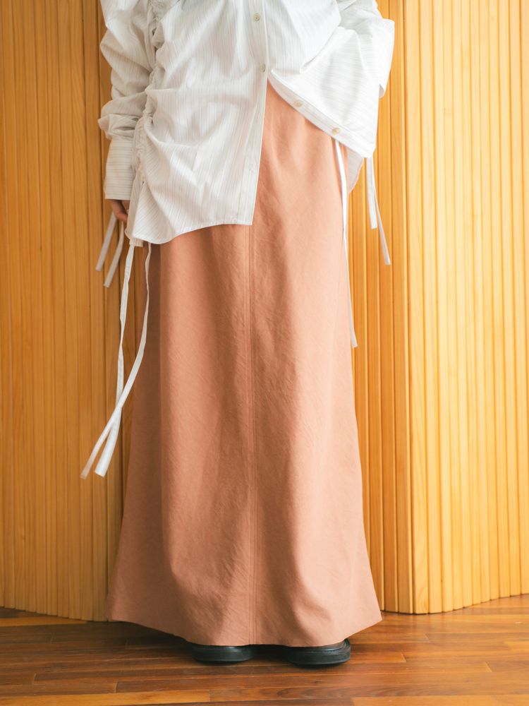 生地をバイアス使いすることで生まれる美しいドレープが魅力のロングスカート