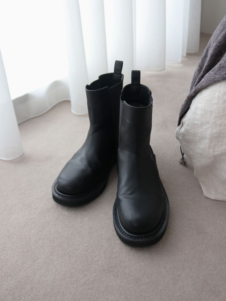 履き口にプルストラップを付けているので着脱がすやすいです。