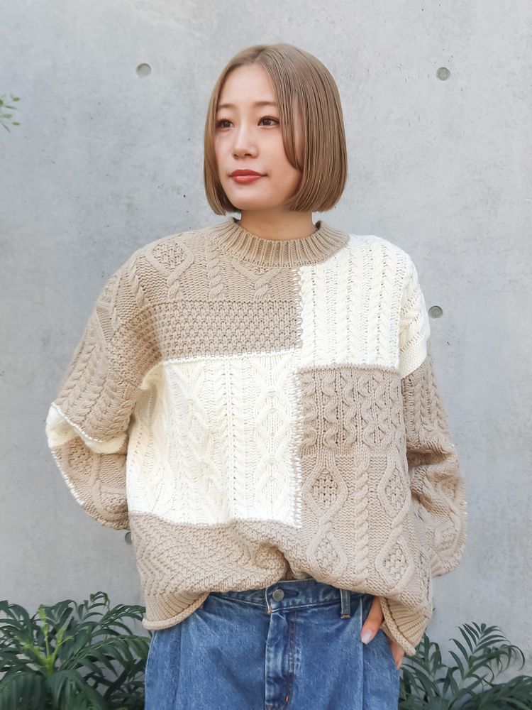 パッチワークのように様々な編み柄を取り入れた贅沢なデザイン。