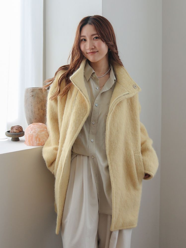 • アルパカ混ミドル丈スタンドカラーコート
