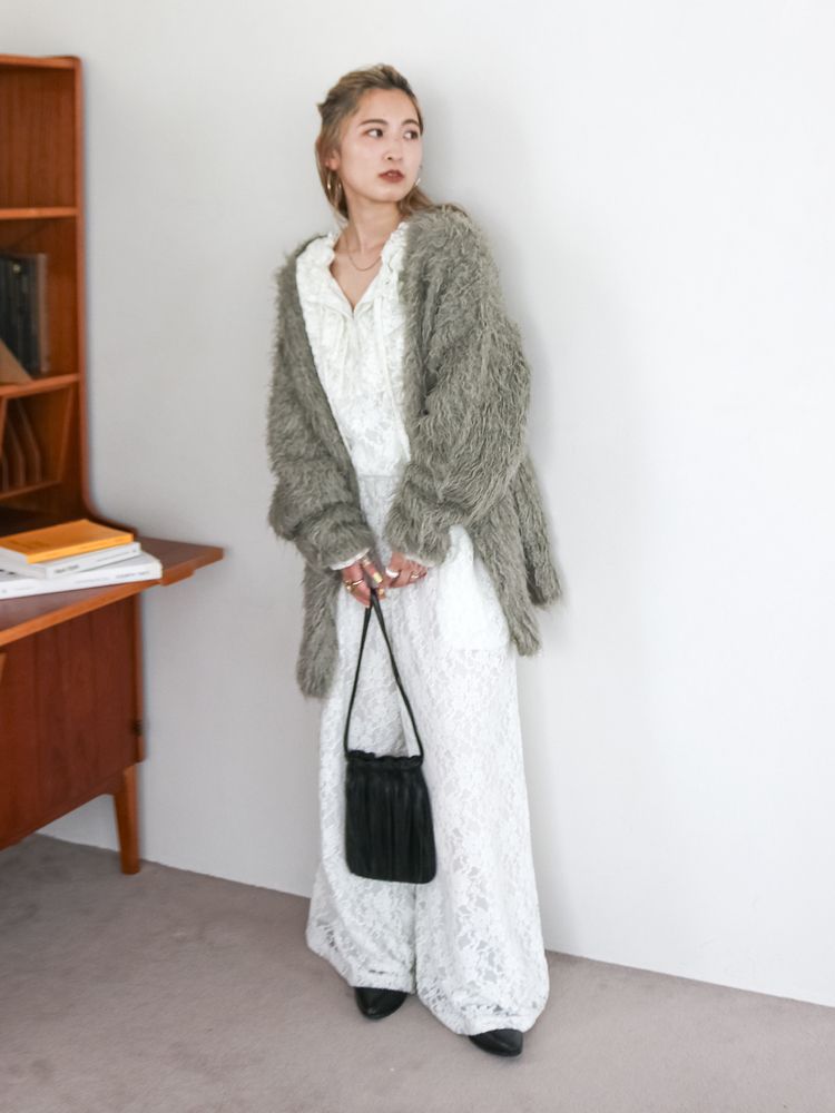 冬の重くなりがちなスタイリングに抜け感を生むアイテム。