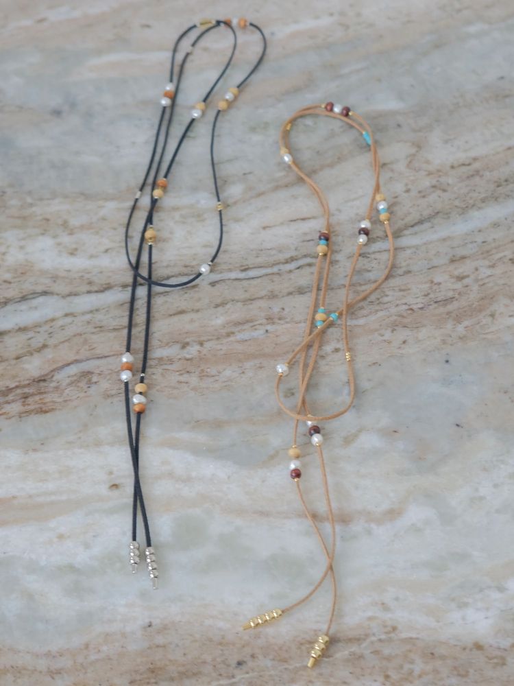 素肌に優しく馴染むナチュラルなレザーコードに、ウッドパーツをアクセントとしてあしらったネックレス。