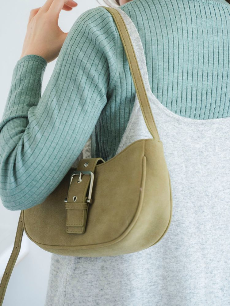 ショルダーの長さは調節可能で、あえて少し長めに垂らすのがおすすめです。