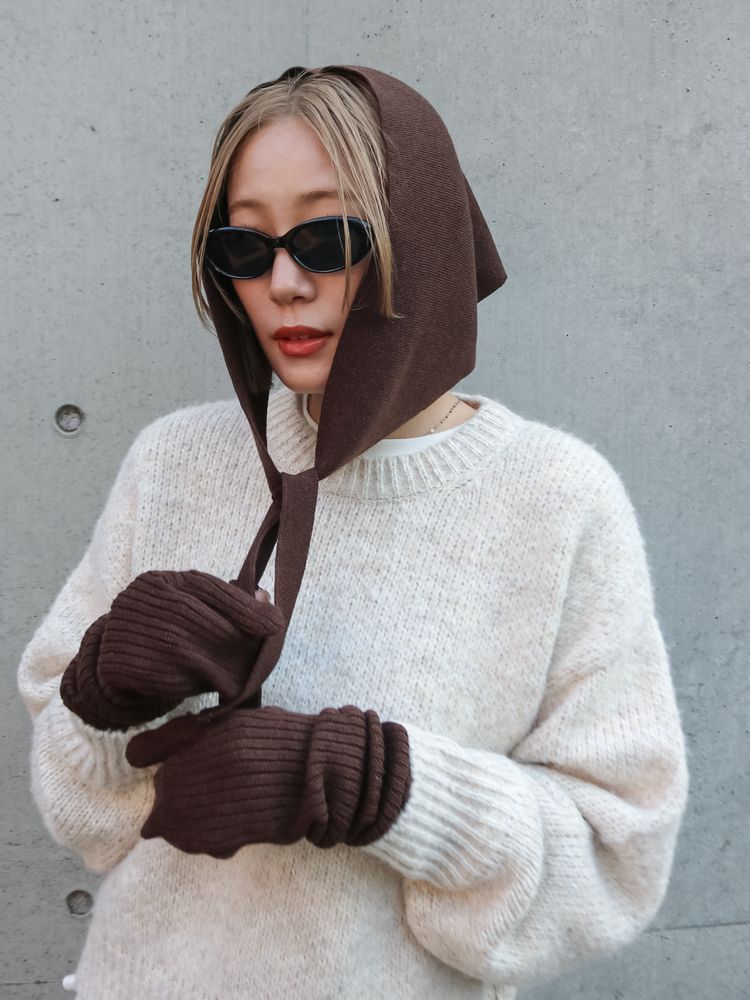 Vネックデザインニットキャミワンピース(品番:1125603815)と同じ生地を使用したミトンとスカーフのセット。