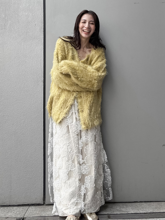 起毛感のある素材が印象的でこの秋冬らしい1着。