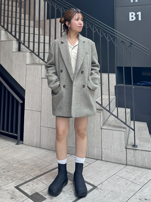 メンズライクでルーズサイジングのシルエットがかわいい1着。