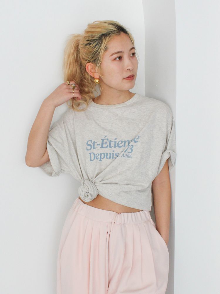 フロントのロゴプリントがアクセントになったフォトジェニックなTシャツ