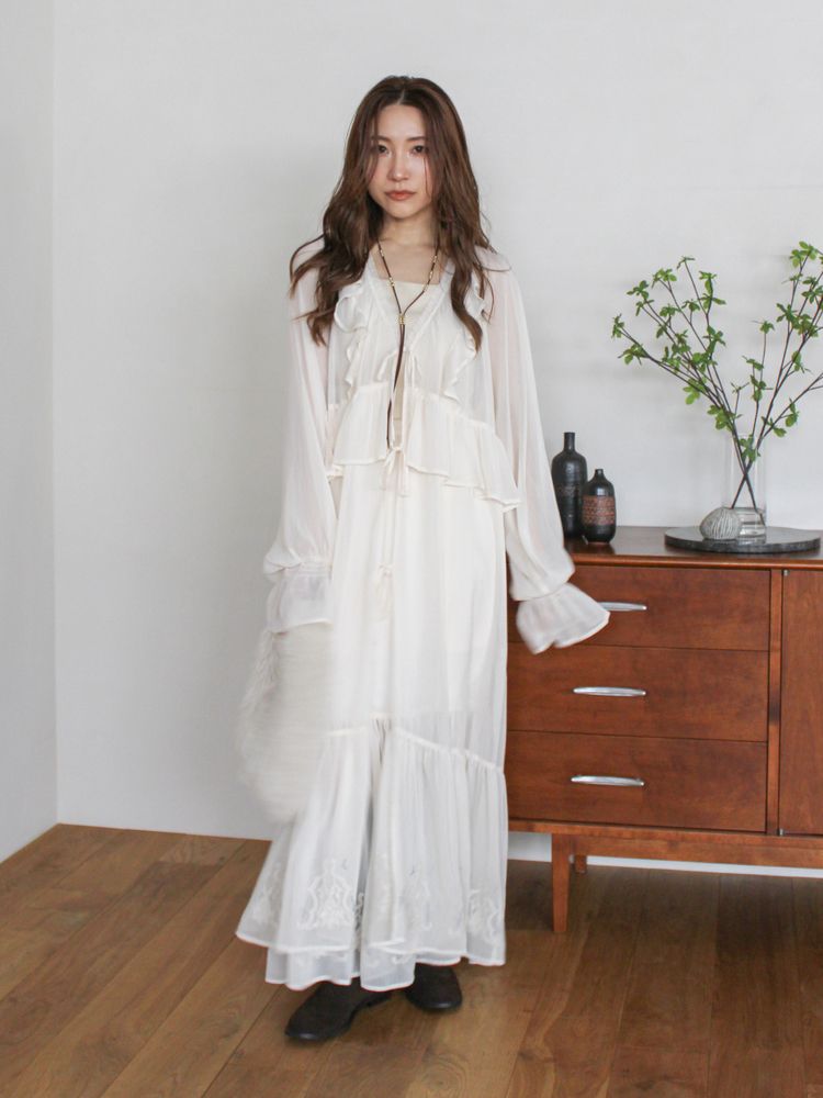 たっぷりとフリルをあしらいボヘミアンライクな印象。