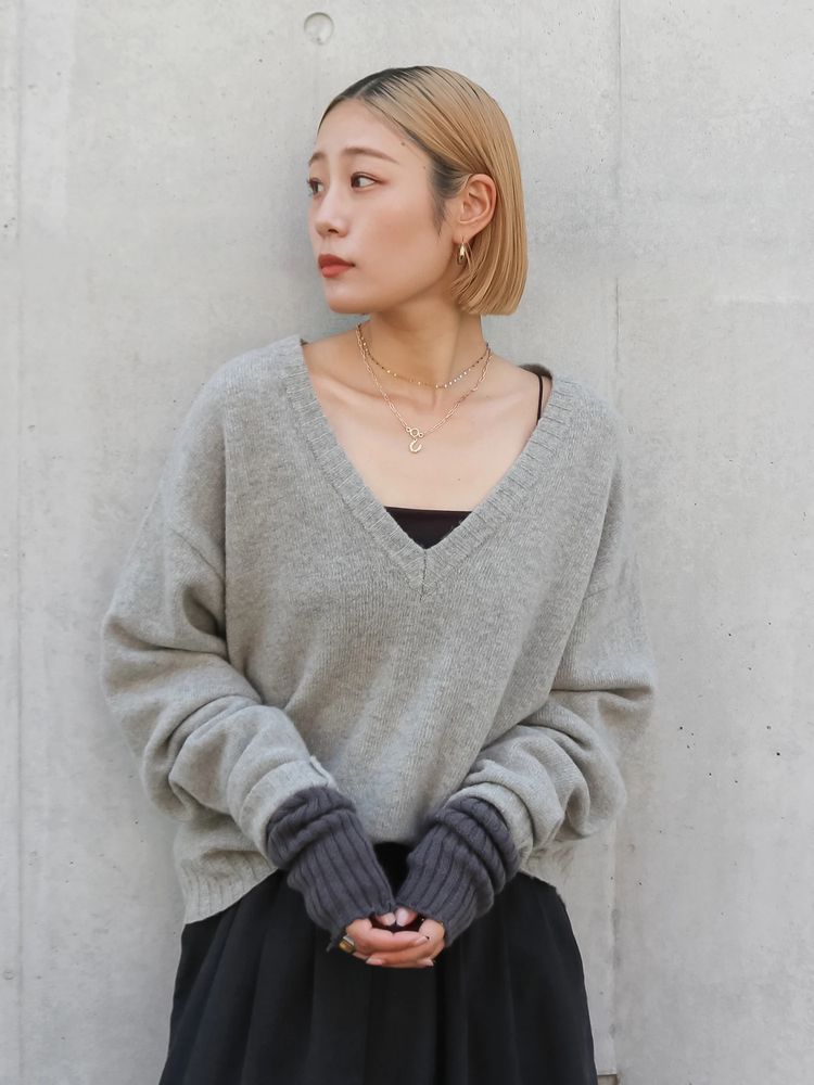 すっきりとしたVネックがポイントのルーズニット