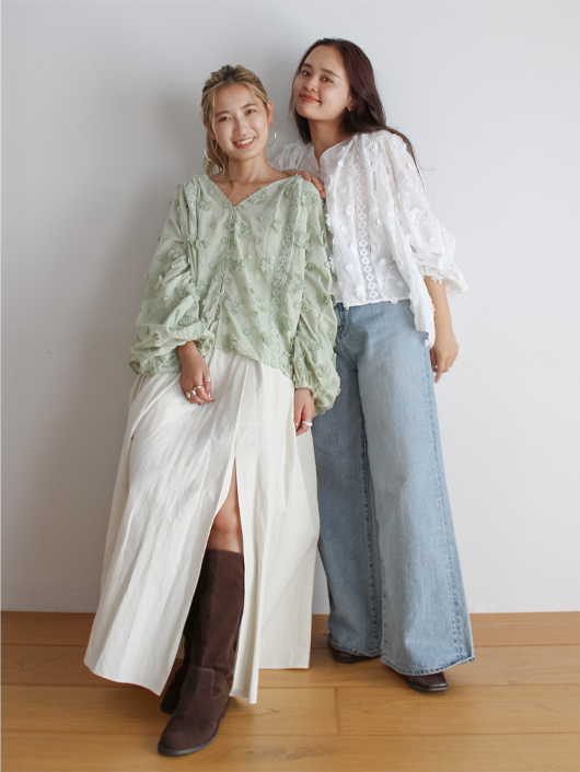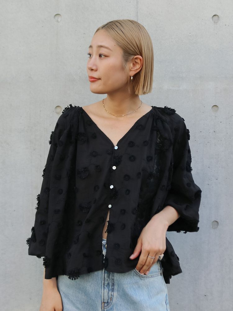 • スリーブボリュームジャカードブラウス