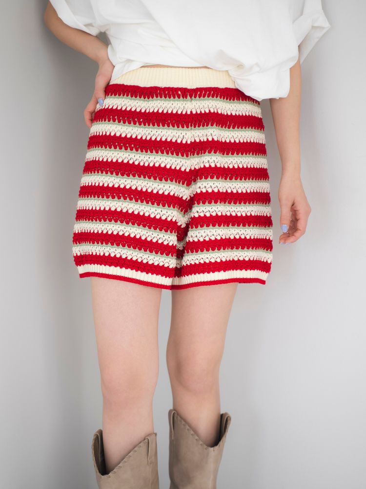 キャッチーな配色が目を引くショートニットパンツで、Ungridらしいビーチムード満載のデザイン