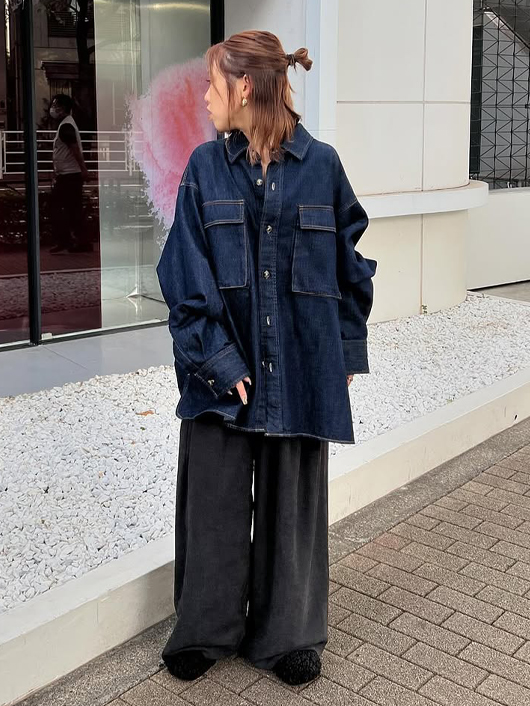 冬のアウターやニットをあわせても野暮ったく見えにくいデニムです。