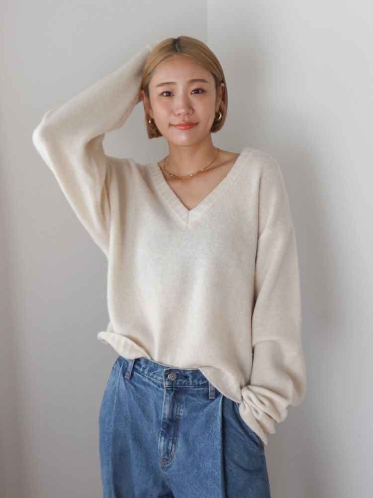 袖丈も長めにしており、インナーだけでなく、1枚でも様になるニットです。