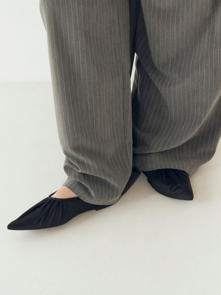 あえて長めに設定したつま先のデザインが大人な印象のフラットシューズ